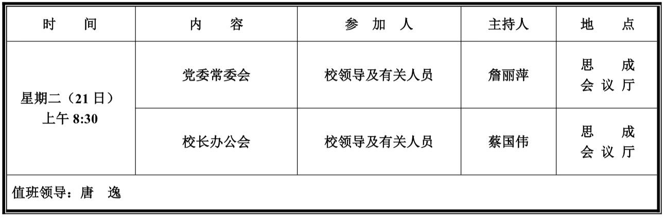 第九周学校活动安排