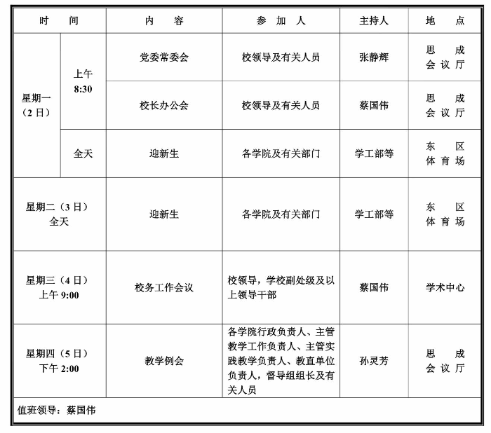 第二周学校活动安排
