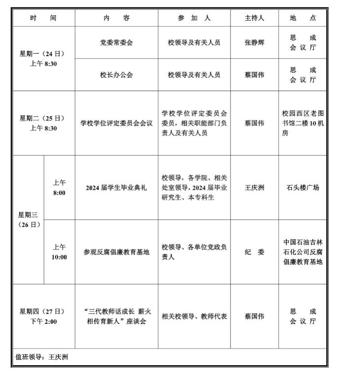 第十七周学校活动安排