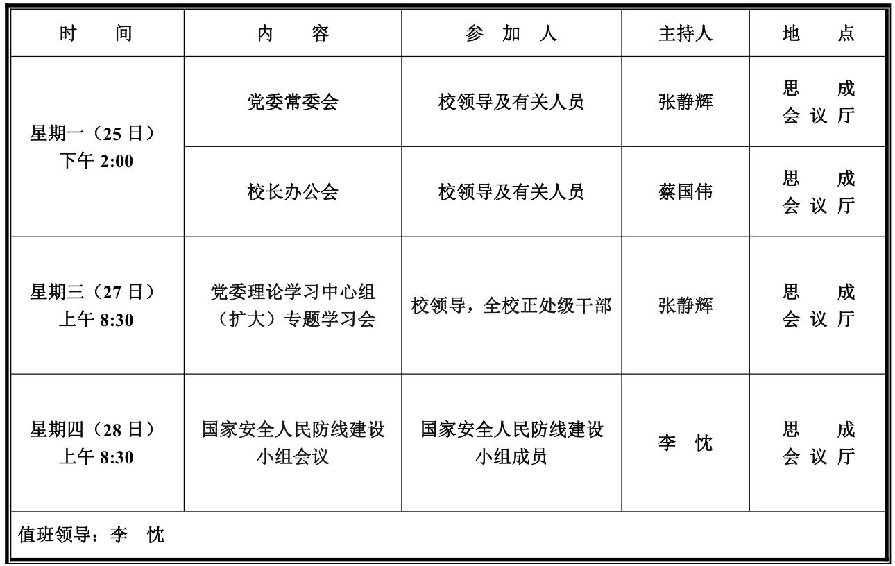 第四周学校活动安排