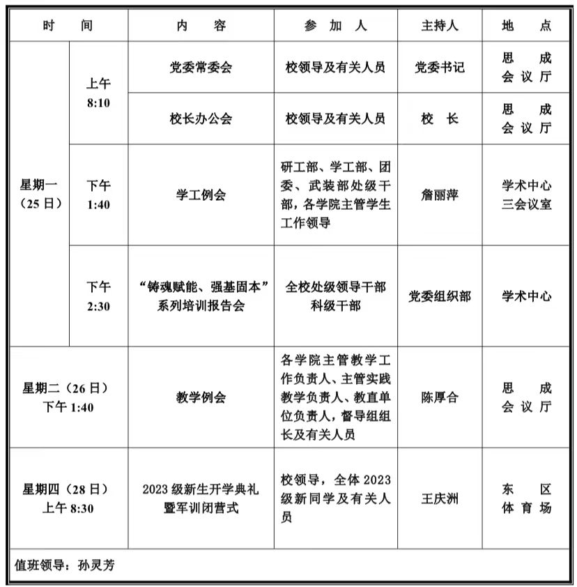 第六周学校活动安排