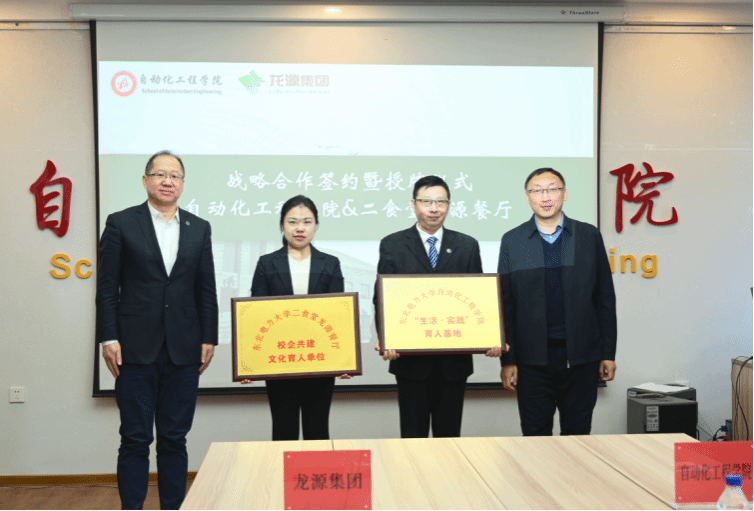与东电二食堂龙源餐厅经过前期友好协商、充分沟通及精心筹备,于2025年12月5日,在主教430室举行校企共建育人合作签约暨授牌仪式。龙源集团副总裁李家勇、龙源集团吉林公司总经理张芹、龙源集团吉林公司东电项目总经理助理刘虹声、龙源集团吉林公司东电项目总经理助理沙岩、龙源集团吉林公司东电项目第二学生食堂店长王志刚、龙源集团吉林公司综合办经理施岩等龙源集团代表,动漫花园