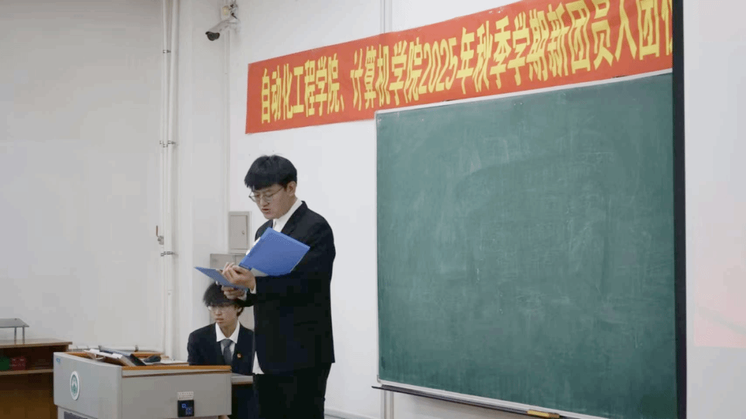 团委副书记(学生)岳瑞郑重宣读2025年秋季学期新发展团员名单,每一个名字都承载着梦想与希望,代表着又一批优秀青年正式加入中国共产主义青年团。