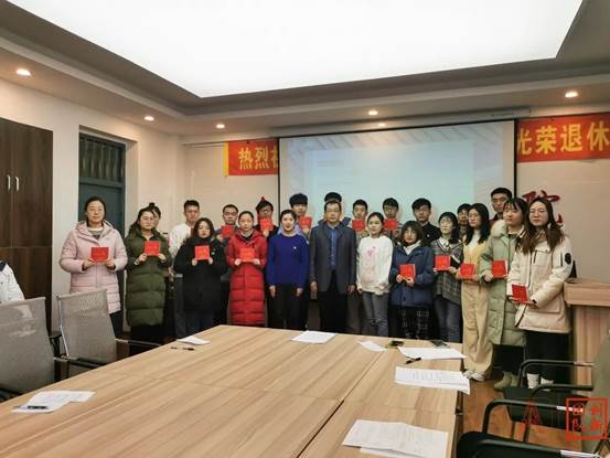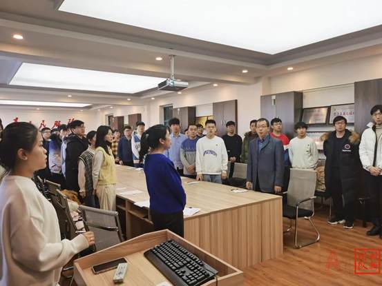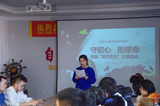 学生党支部首批过政治生日的党员名单,全体党员起立并重温入党誓词。
